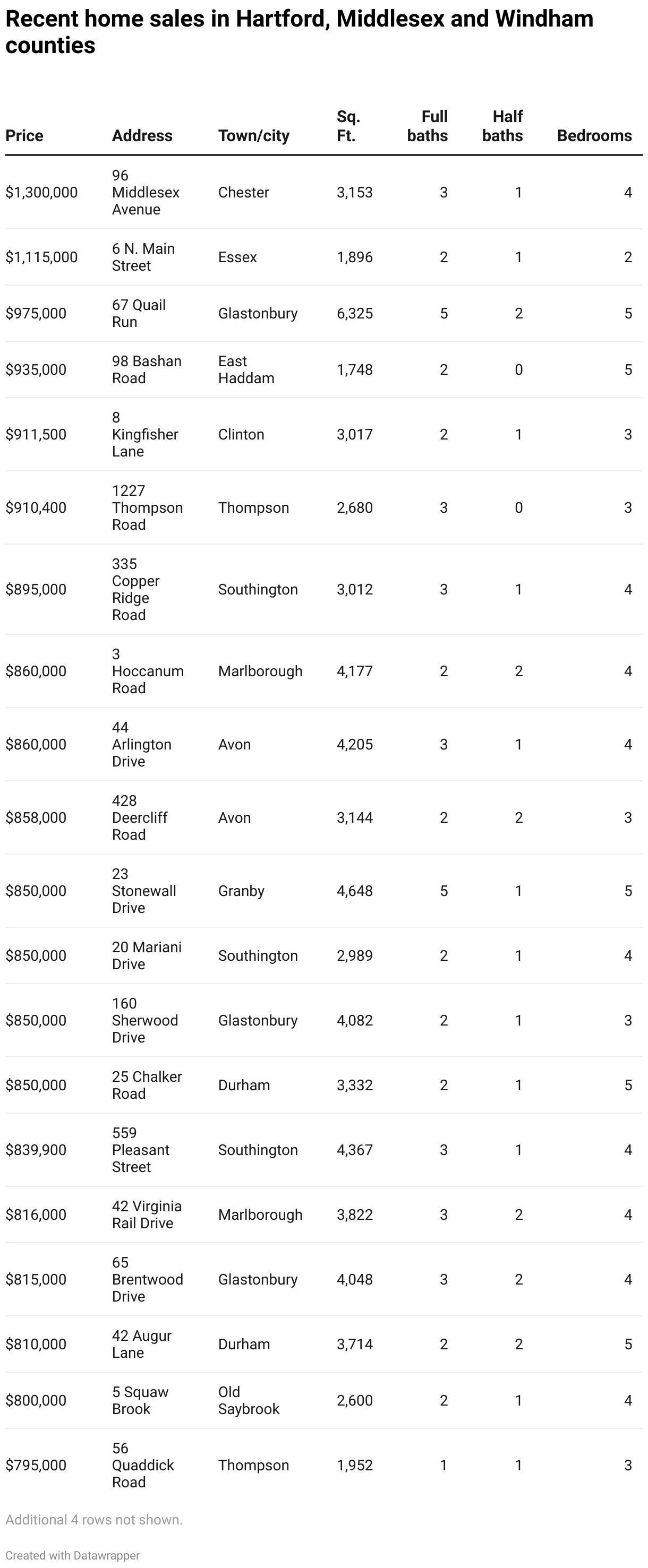Here’s a listing of recent luxury home sales in Hartford, Middlesex and Windham counties. The data is provided by Evan Berman of the William Raveis Broder Team.